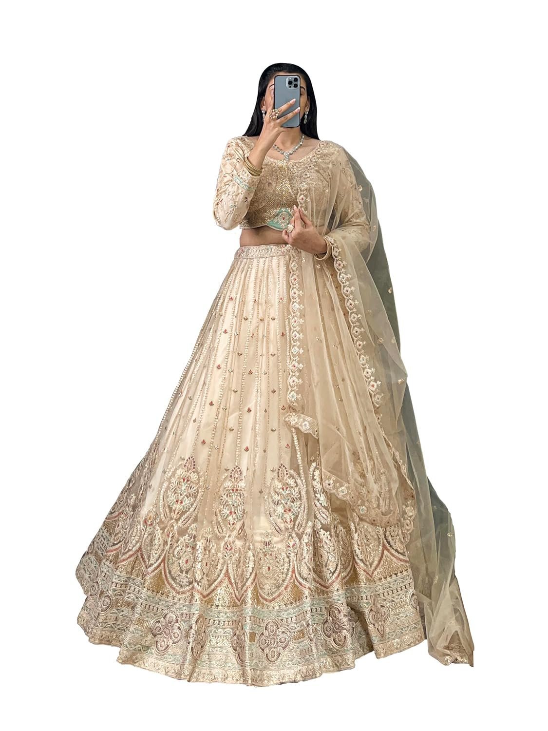 • Lehenga (Stitched), Lehenga Fabric : Net , Lehenga work : Sequins and Thread Embroidery Work , Lehenga Waist : SUPPORTED UP TO 42, Lehenga Closer : Drawstring with Zip , Stitching : Stitched With Double Cancan And Canvas , Length : 41, Flair : 3.50 Meter, Inner : Micro Crepe