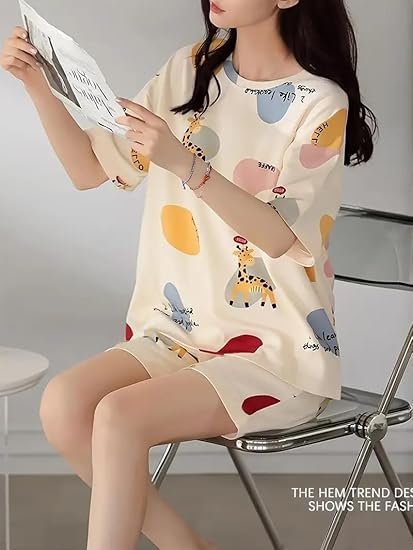 - Sleeve Type: Half Sleeve | Neck Type: Round Neck Night Suit set for Women Stylish
