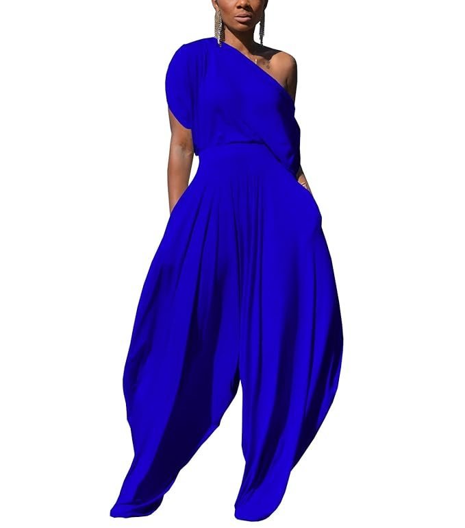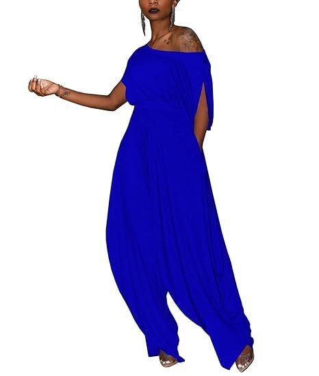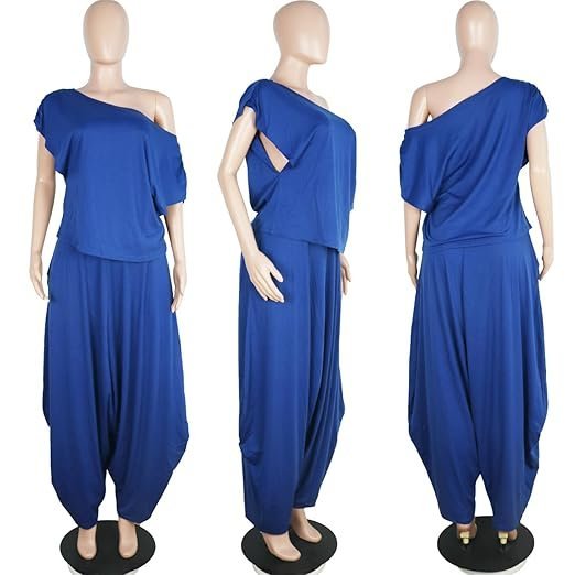 - Features: Off one shoulder, sexy cap sleeve t-shirts, loose fit, pullover top, Short Sleeves with ruched, high waist Flowy Harem Pants with two side pockets, Loose Wide Leg Long Pants Harem Trousers, solid color, Plus Size Two piece outfits, Casual 2 Piece Harem Pants Sets.