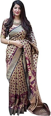 Women’s Banarsi Silk Blend Saree With Blouse Piece Multicolor Saree Designer Saree