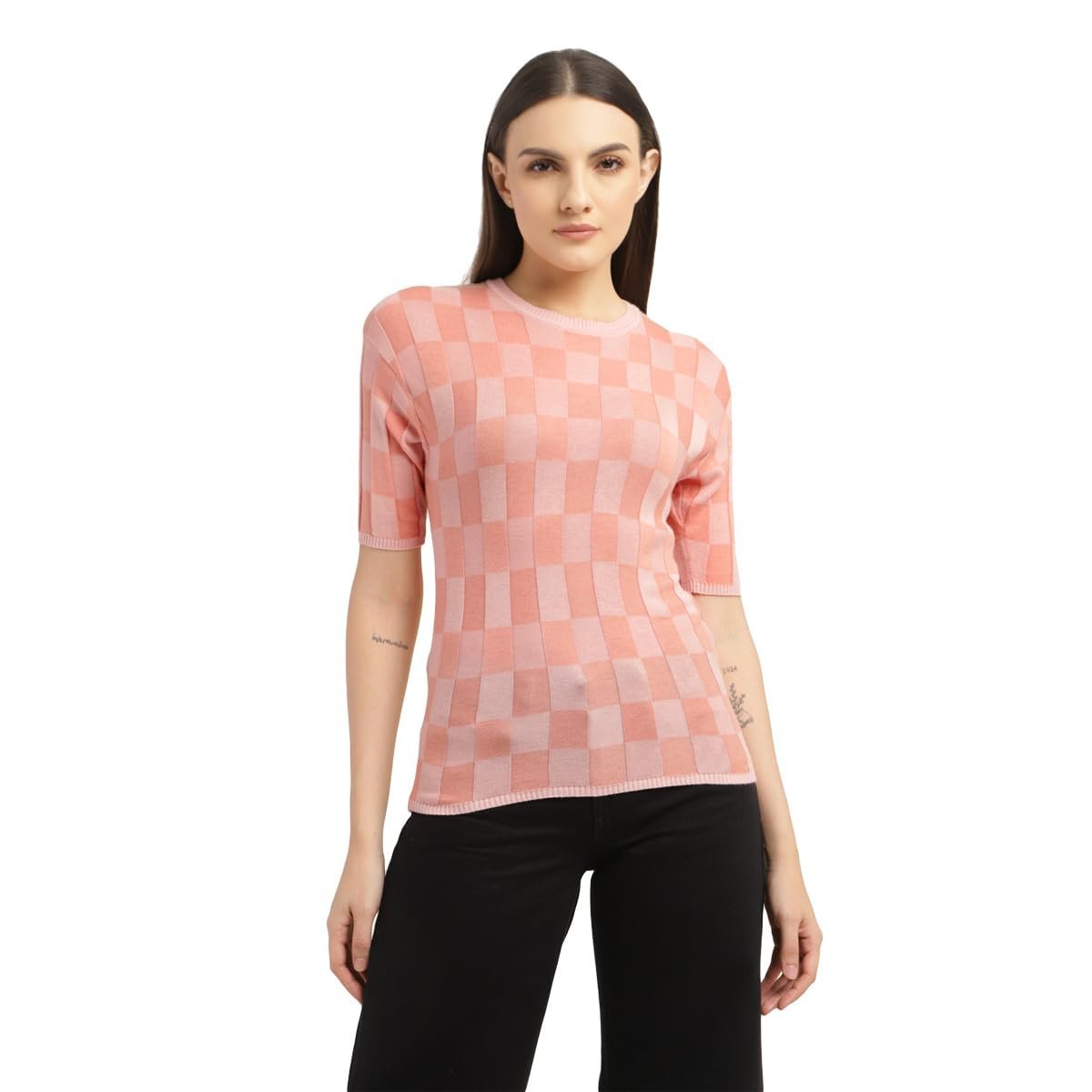 + Free Shipping- Women’s Checkered Crew Neck T-shirt