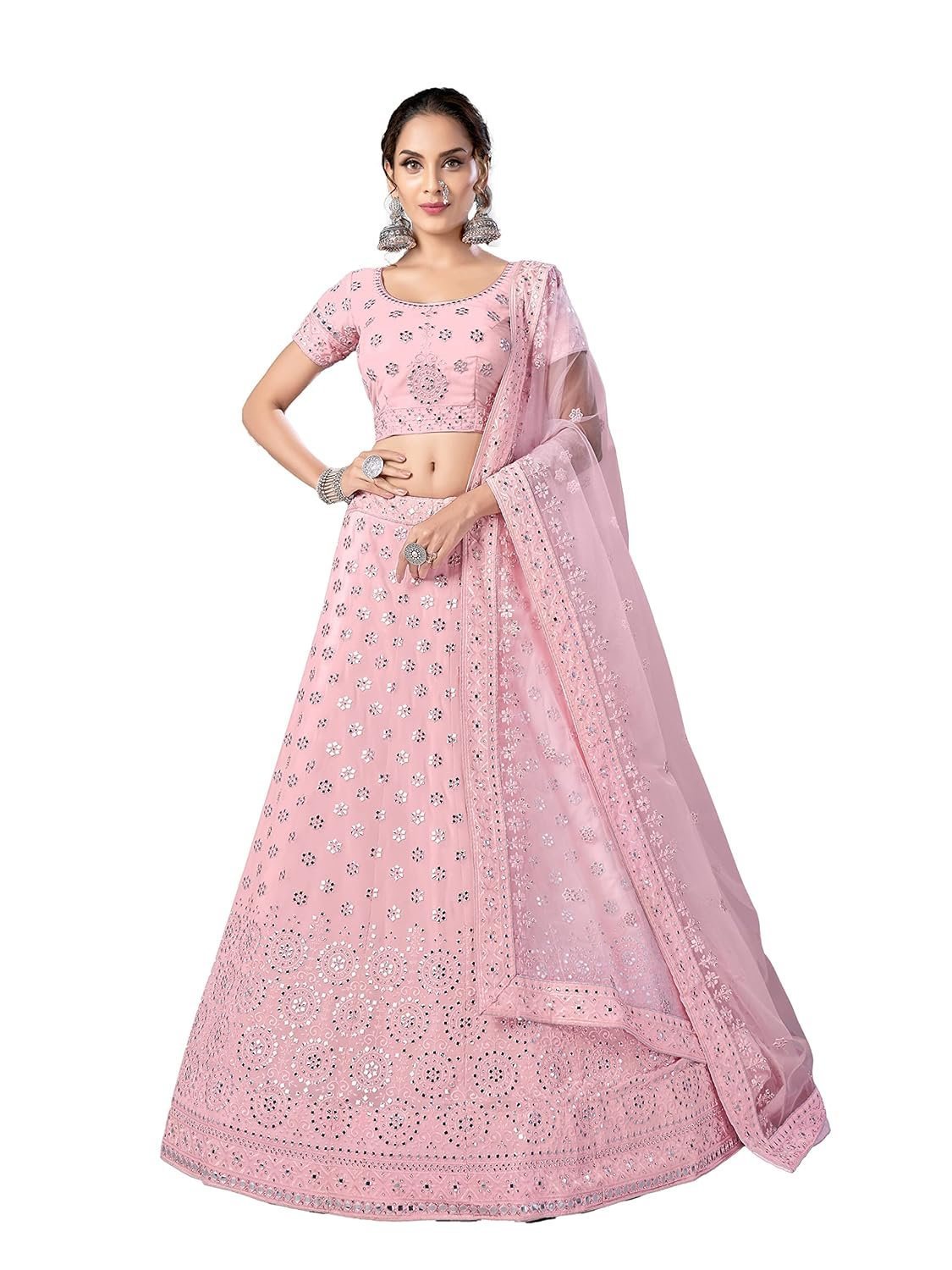 Women's Mirror and Resham work Pink color Georgette base Lehenga Choli For WomenWomen’s Mirror and Resham work Pink color Georgette base Lehenga Choli For Women