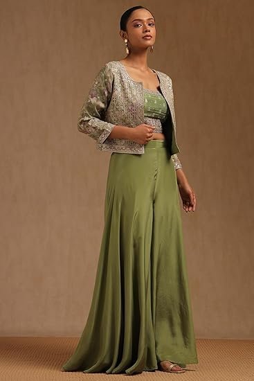 - Package Contains: 1 Crop Top, 1 Jacket , 1 Palazzo